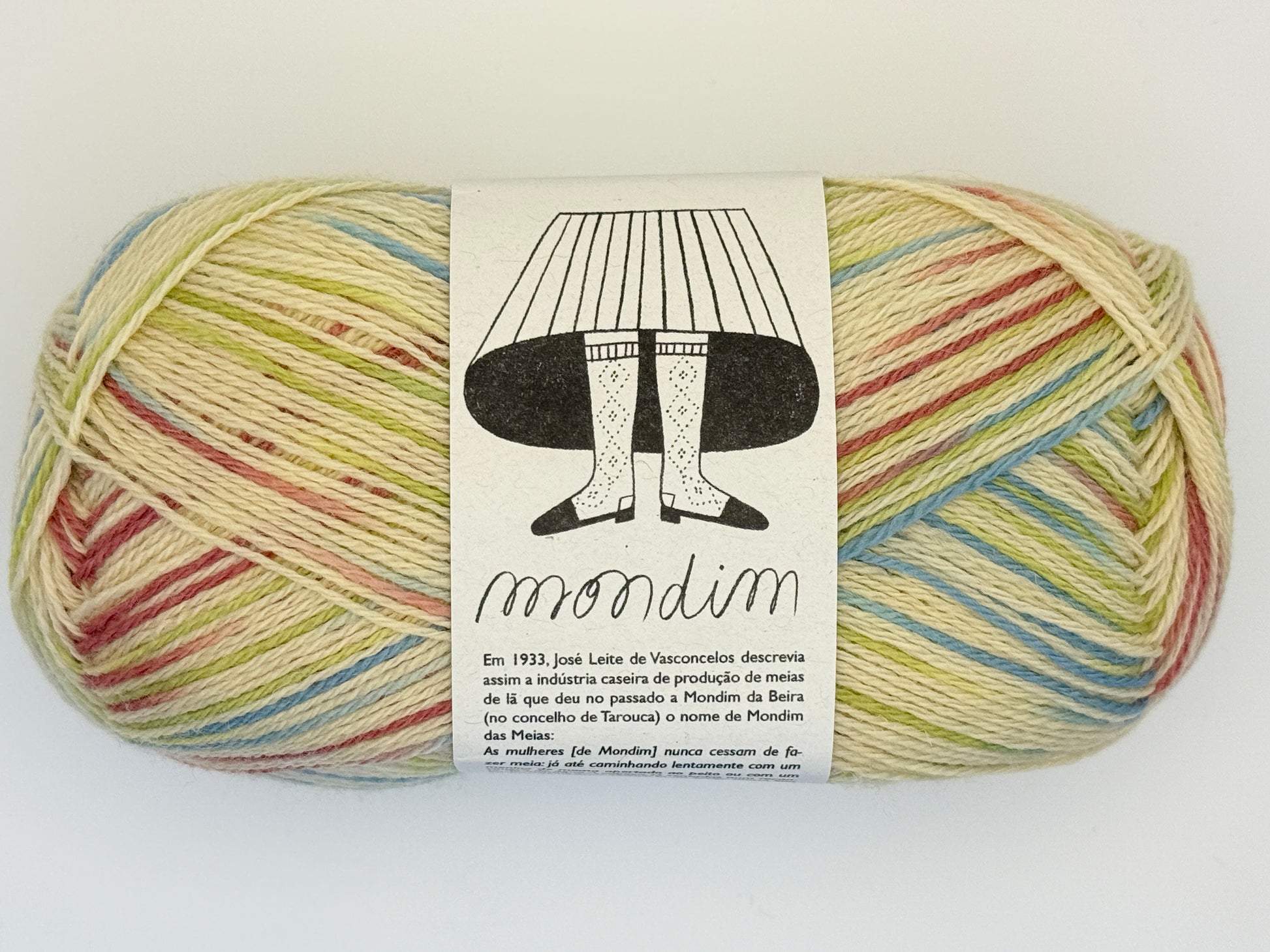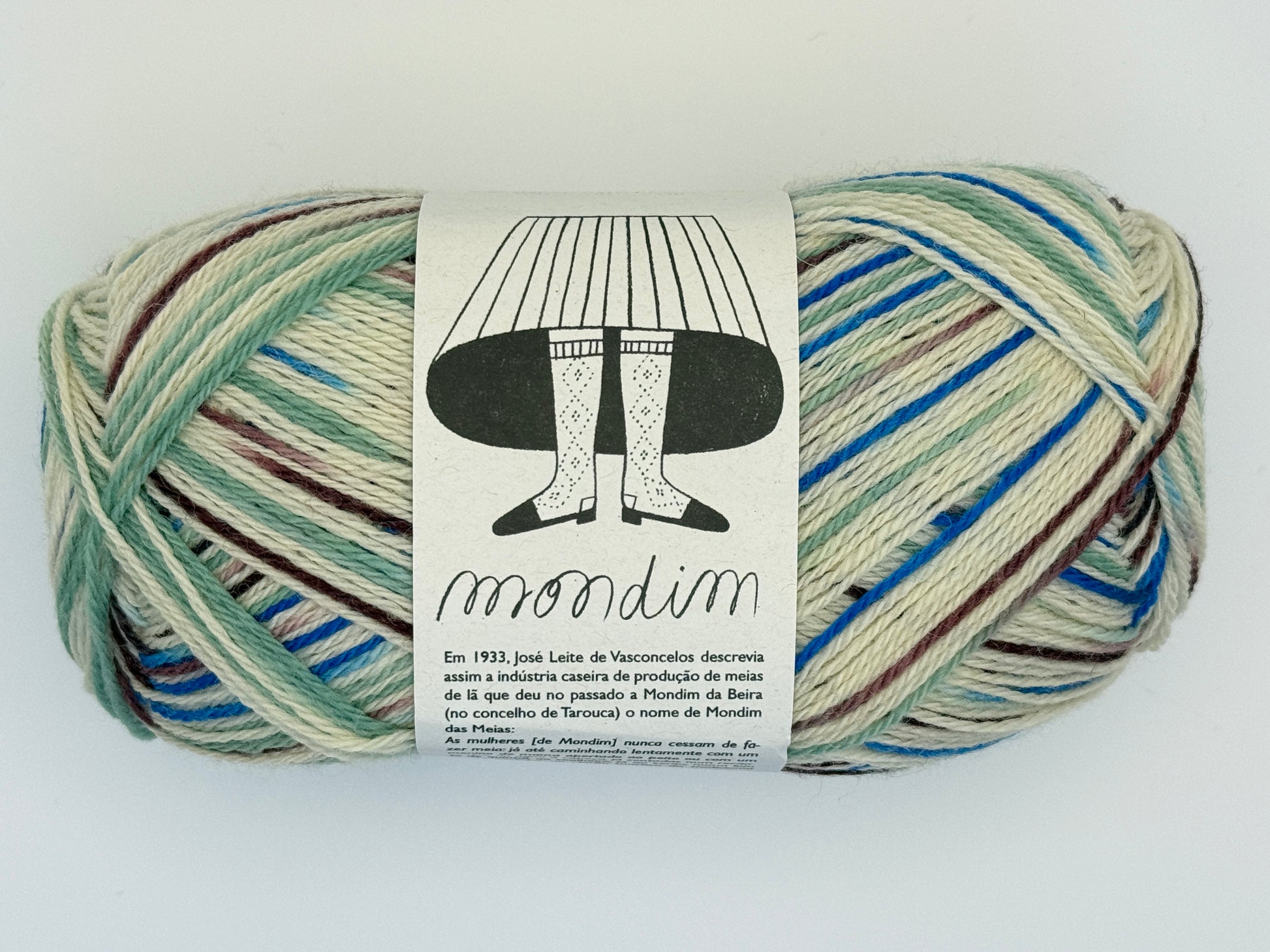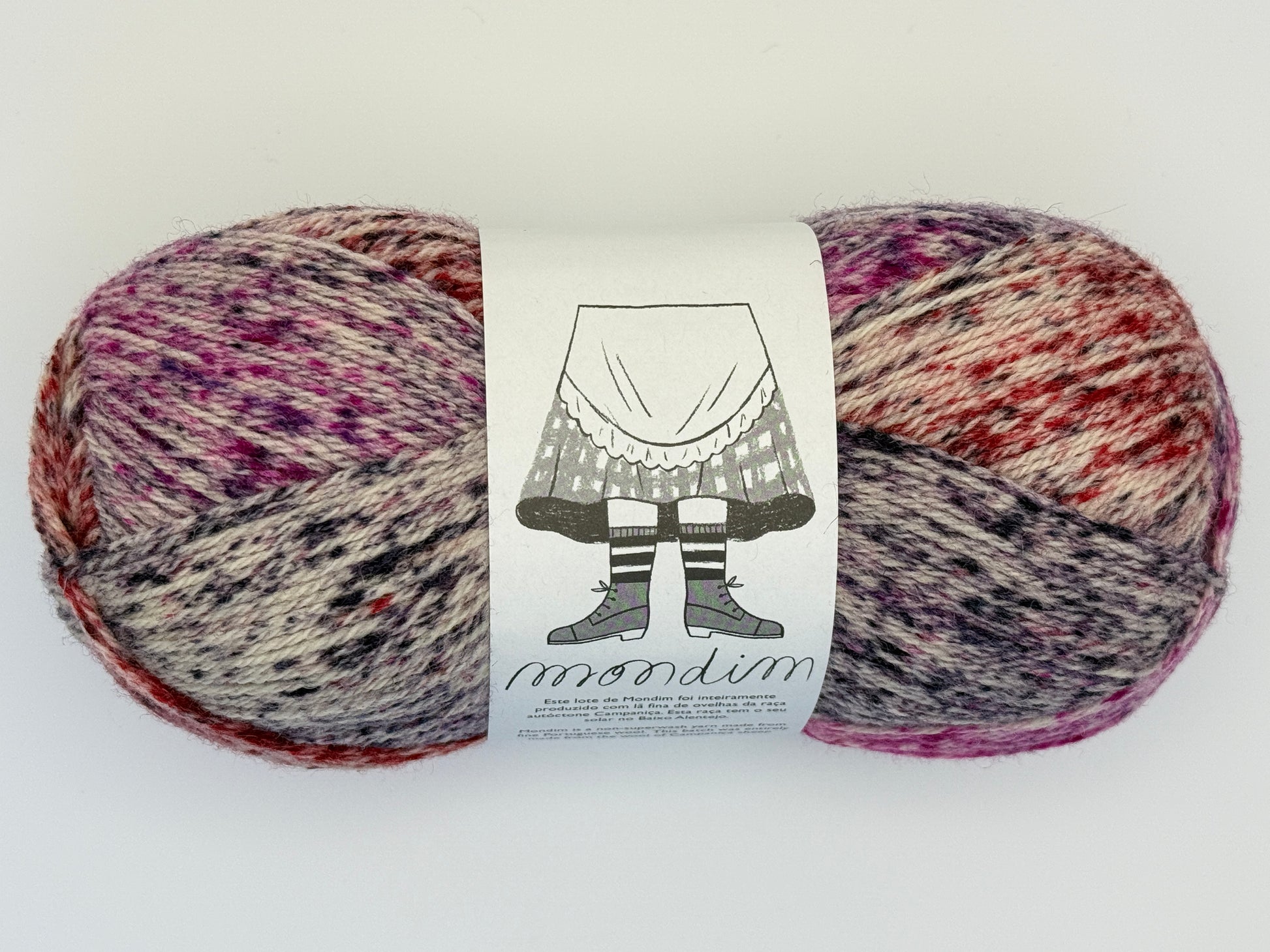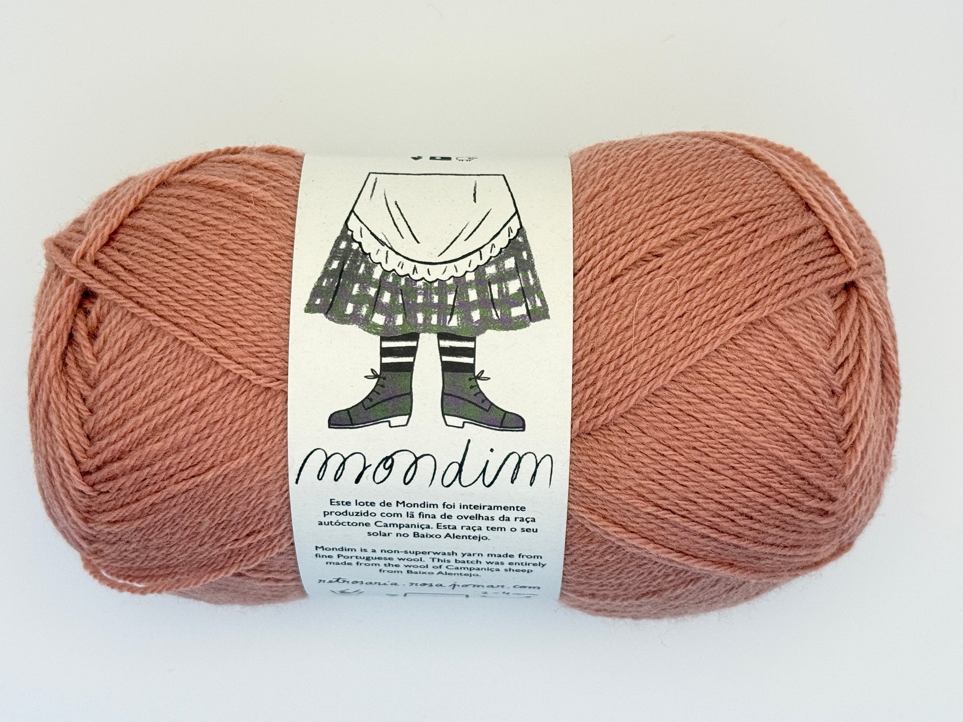 Mondim from Retrosaria Rosa Pomar is a non-superwash fingering weight yarn made from fine Portuguese wool. It is named after a Portuguese village once famous for its sock knitting cottage industry. Most batches of Mondim are exclusively made from the wool of native Campaniça sheep. Mondim works well with any fingering weight sock pattern, as well as for other garments that call for fingering weight wool.